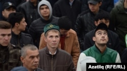 Несколько тысяч мусульман собрались внутри и около Москвовской соборной мечети рядом с проспектом Мира, чтобы отпраздновать Курбан-байрам, или день жертвоприношения.