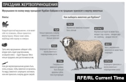 Праздник Курбан-байрам отмечается в честь окончания хаджа — ежегодного паломничества в Мекку. В этот день мусульмане приносят в жертву барана или другое животное, а часть мяса раздают неимущим.