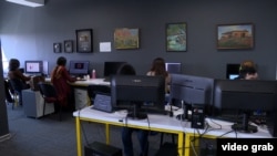 "Вот здесь у нас анимационная студия. Вот работают 2D-аниматоры, 3D-аниматоры", – показывает Курман Жолдошев.
