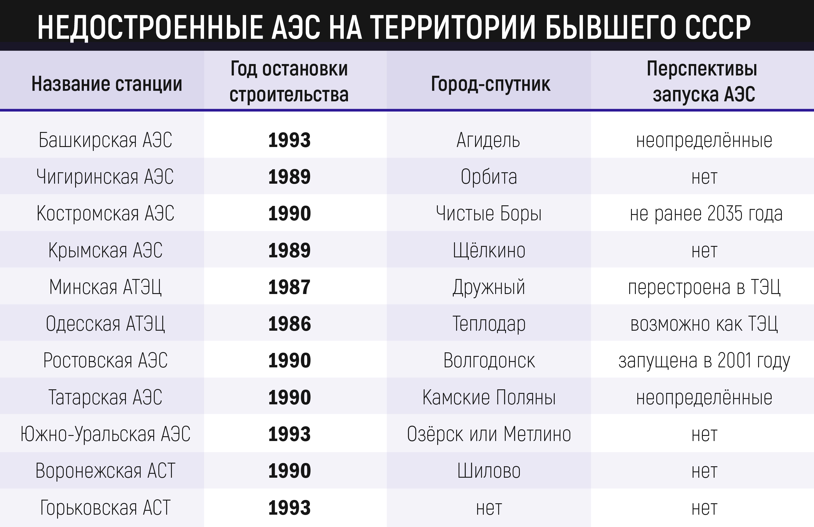 Катастрофа на Чернобыльской АЭС повлияла на судьбу других атомных электростанций, которые строились или планировались по всему СССР. На тот момент таких было одиннадцать. Только одна из них – Ростовская – была запущена. Одну – Минскую – перестроили в ТЭЦ. Четыре имеют неясные перспективы. Остальные пять – так и не будут запущены никогда. К ним относится и Чигиринская АЭС в Черкасской области Украины.
