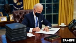 В первый день своего пребывания на посту президента США Джо Байден подписал 17 распоряжений и президентских указов, заблокировав несколько ключевых решений своего предшественника Дональда Трампа. В частности, президент Байден наложил запрет на строительство пограничной стены на границе с Мексикой, восстановил запрет на сооружение нефтепровода Keystone, объявил о намерении восстановить членство США во Всемирной организации здравоохранения и присоединиться к Парижскому соглашению об изменении климата.