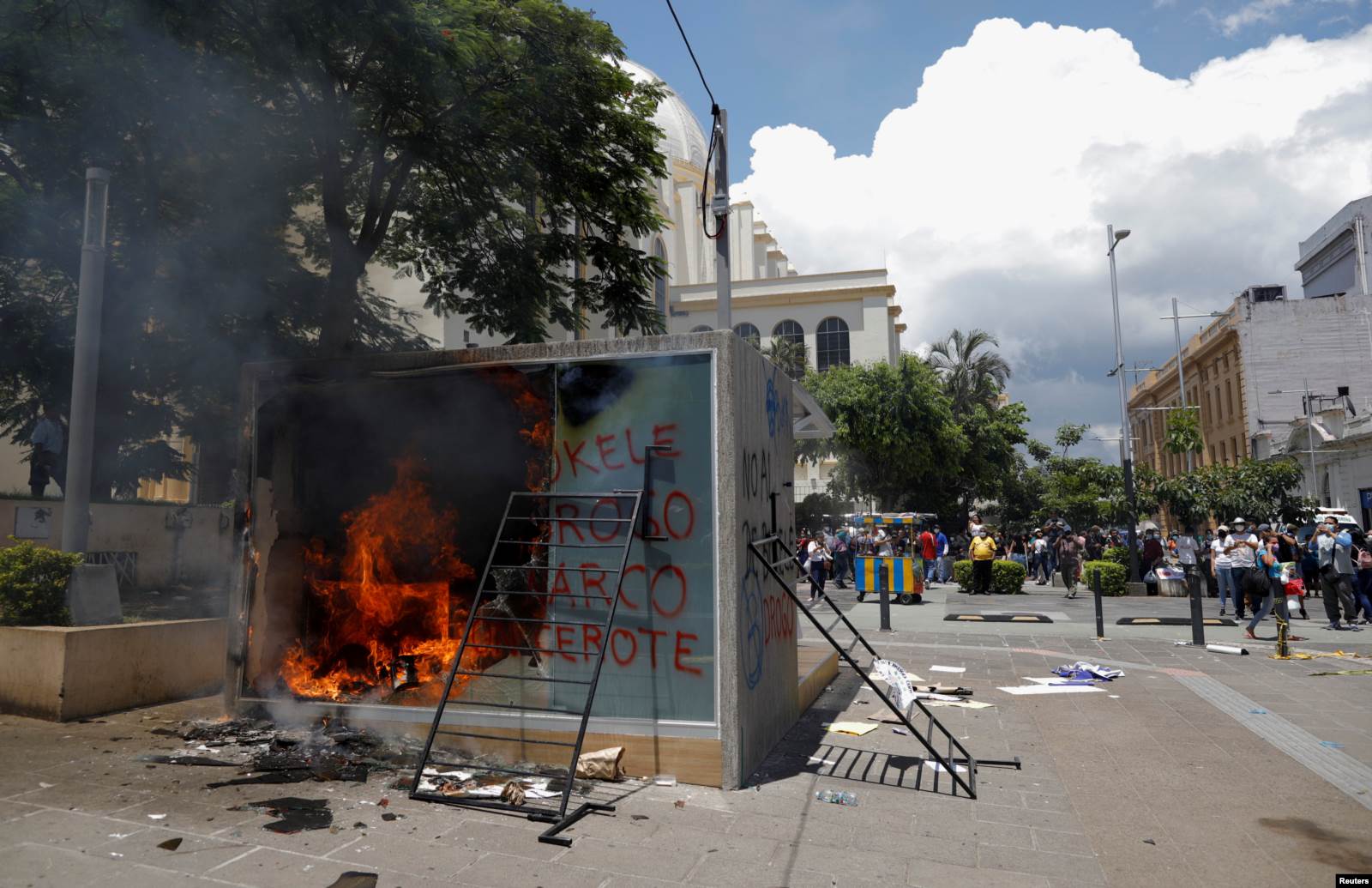По закону использование электронных кошельков и криптовалюты добровольно. Правительство обещает, что зарплаты, пенсии и социальные пособия будут выплачиваться как и раньше – в долларах. Но не все в это верят. Люди опасаются, что скоро биткоин станет обязательным, а коррупционеры придумают на основе криптовалюты новые способы по отмыванию денег. С момента легализации выступления недовольных происходят почти ежедневно. Самый большой протестный марш прошел в Сан-Сальвадоре в День независимости – 15 сентября. Ущерб от него столичная мэрия оценила в $55 тысяч. Когда манифестанты разгромили и сожгли новый криптовалютный банкомат Chivo, полиция не вмешивалась. Здания в историческом центре исписали перечеркнутым значком биткоина и лозунгом "Долой диктатуру!". Дело в том, что криптовалюта не единственное радикальное нововведение самого молодого президента обоих американских континентов.