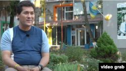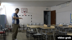 Кыргызстанец проводит экскурсию по своей частной школе. Она работает и сейчас, в военное время.