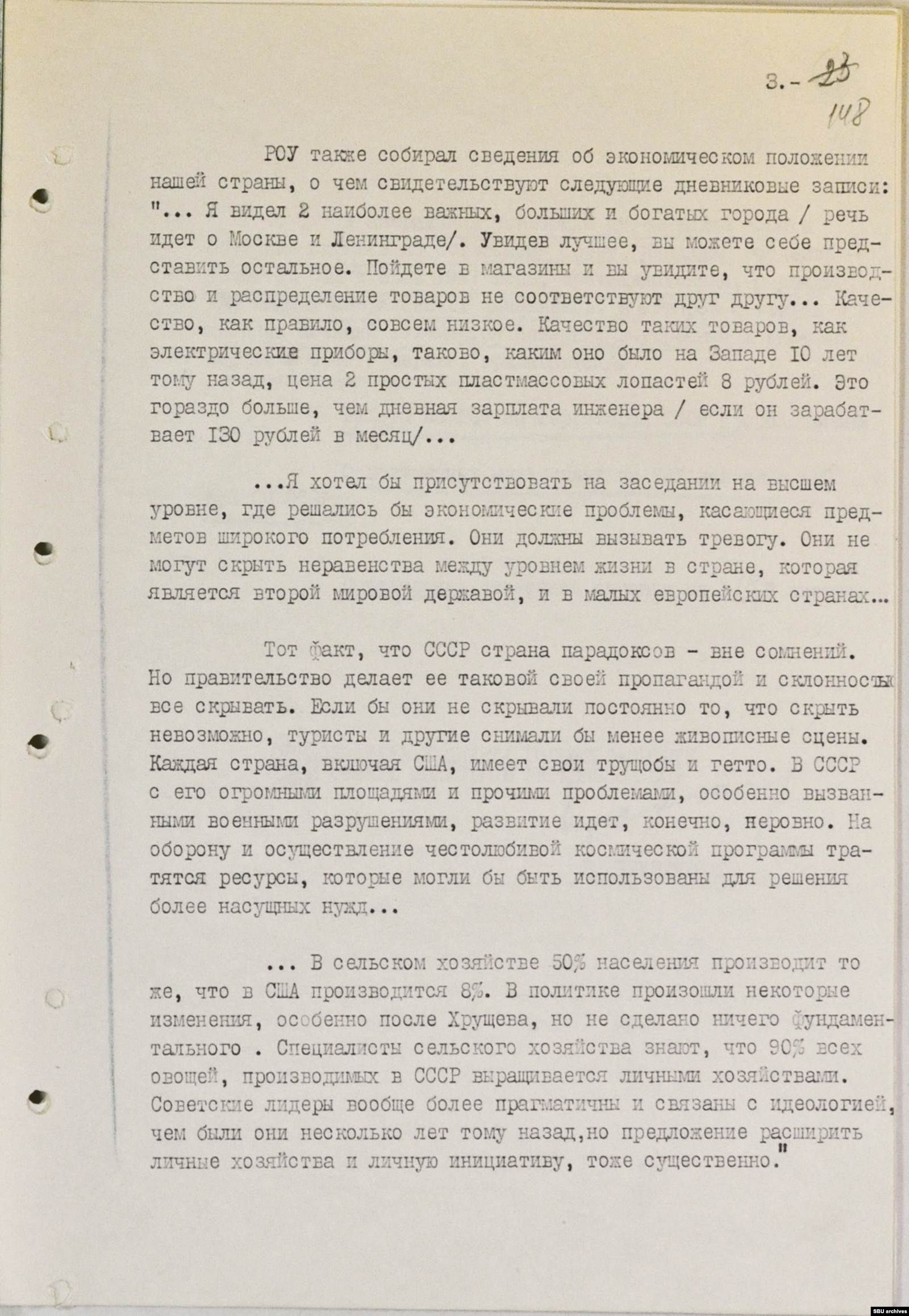 В тех же документах сотрудники органов отчитываются: "Негласным путем были перефотографированы подробные дневниковые записи Роу, в которых он критически оценивал отдельные стороны жизни и деятельности советского общества". К этому сообщению КГБ прилагаются обширные переведенные на русский цитаты из дневника туриста. Это 27 машинописных страниц, примерно месяц в дороге (треть всей поездки) по маршруту Москва – Ленинград – Таллинн – Рига – Вильнюс – Минск – Киев – Харьков – Запорожье – Ялта. Чекисты выбрали для партийного руководства лишь те фрагменты, которые каким-то образом касались политики или содержали оценки советских реалий.