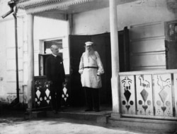 Карл Булла (слева) со Львом Толстым во время фотосессии 1908 года.